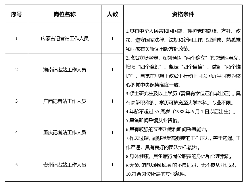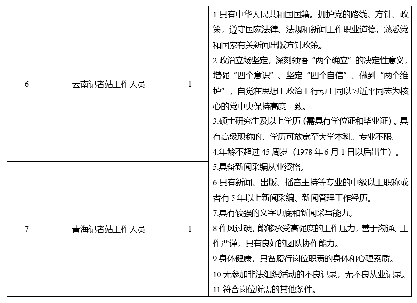 具體崗位及資格條件詳見《科技日報社地方記者站公開招聘崗位信息表》。