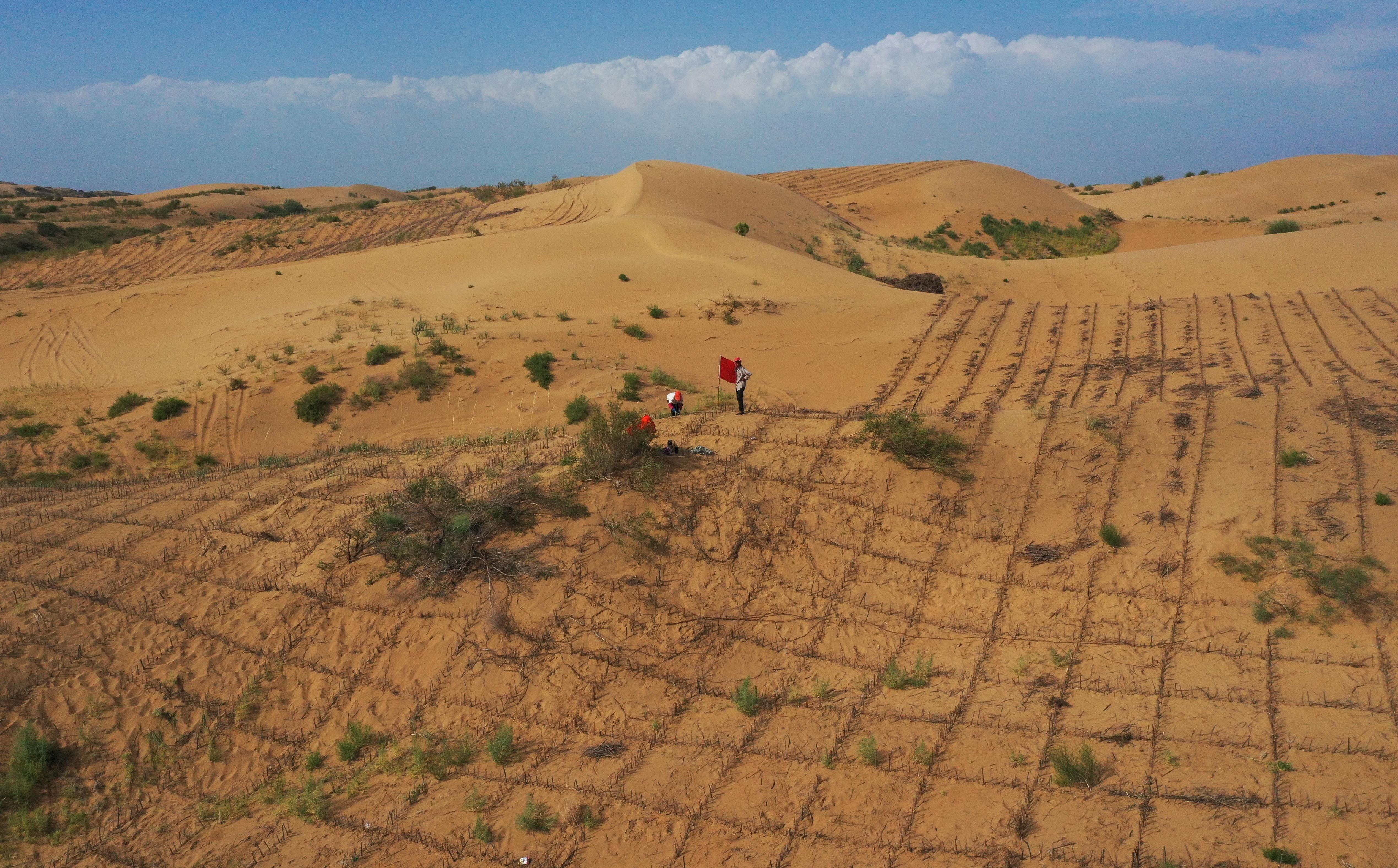 Development of sand control has also been accelerated, with widely adopted mechanized and intelligent technologies, such as sand fixation machinery and drone seeding.