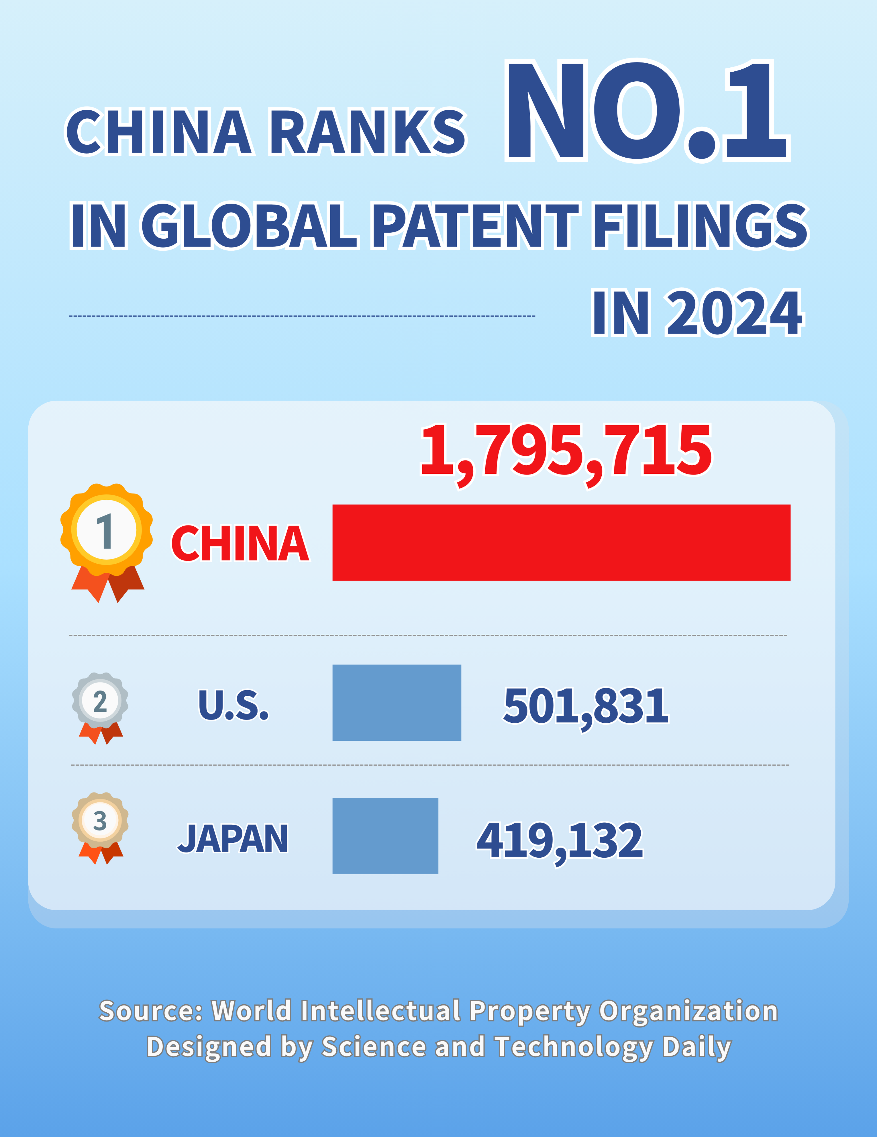 China Ranks NO.1 in Global Patent Filings in 2024