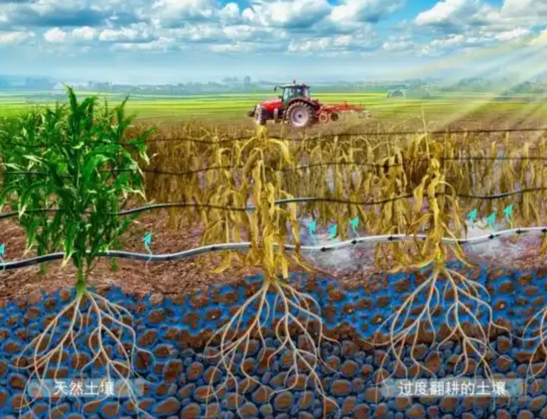 Meanwhile, the heavy weight of farm tools has accelerated water loss. In soil that is minimally disturbed by farming or human intervention, water can quickly seep downward and be stored, acting like a sponge to provide a stable water supply for the crop roots.