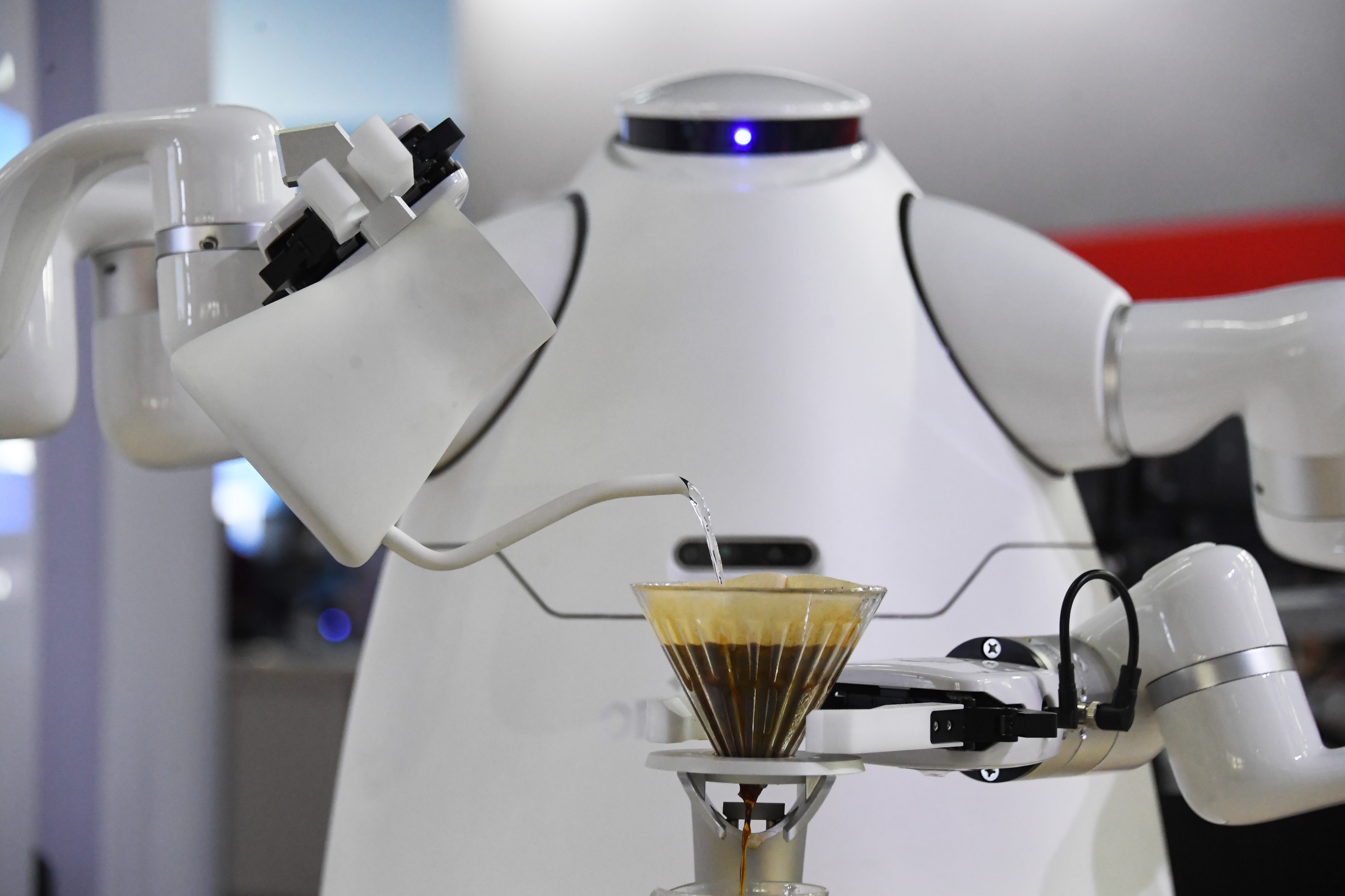 A robotic show that mimics the thousand-hand Bodhisattva catched eyes in the 2023 World Artificial Intelligence Conference which closed on August 8. The humanoid robots's ability to move arms as smoothly as the performance requires arises from a series of smart flexible joints, which distinguish the machines from traditional industrial robot arms.