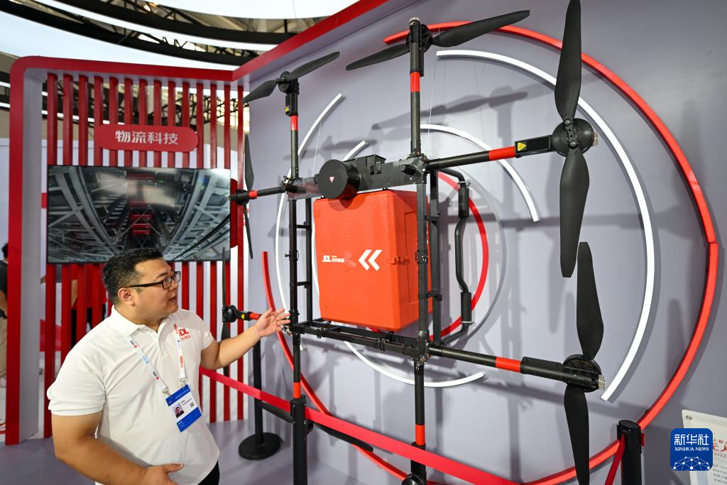 6月20日,參展商在博覽會現場介紹一款專業物流配送無人機。新華社記者 孫凡越 攝