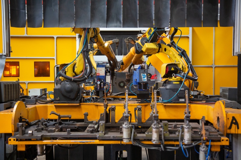 焊接與搬運機器人實現全過程無人化作業,黃色機械臂來回“雕琢”……走進中力電動叉車老河口生產基地,結構車間與總裝車間內高智能化作業令人眼前一亮。“歷經下料、機加工、焊接、涂裝、總裝等工序,一塊鋼板進來,一輛整車出去?!标惣尤A介紹。