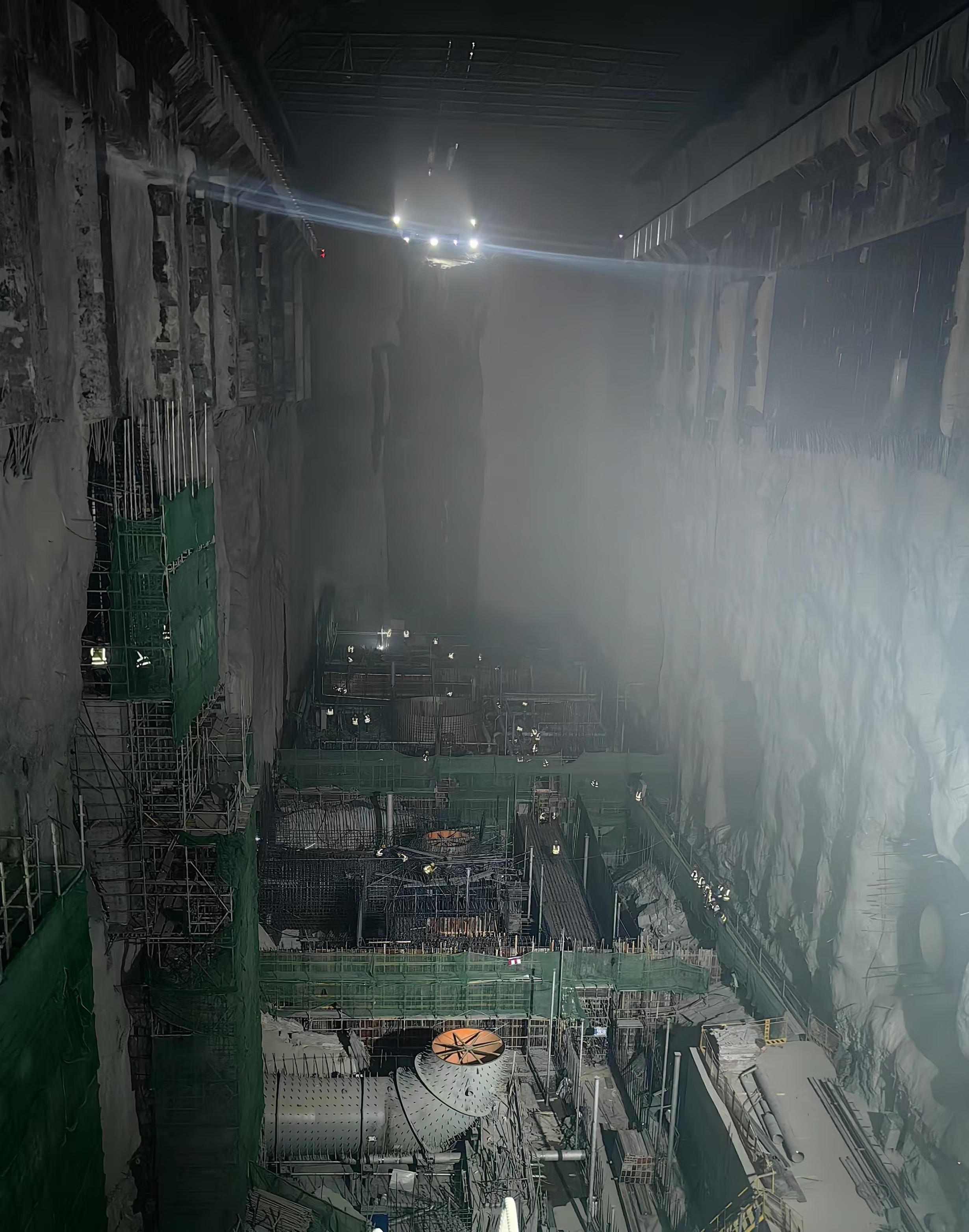 離開(kāi)下水庫(kù),坐上工程車(chē),穿過(guò)1600余米的交通洞,記者來(lái)到肇慶浪江抽水蓄能電站工程的“心臟”——地下廠房。