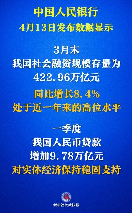 13日中國人民銀行發布了主要金融數據,首季社會融資規模增量超15萬億元、新增貸款9.78萬億元、3月末廣義貨幣M2余額同比增長7%……一個個數據展現著金融對實體經濟保持穩固支持,也折射出實體經濟需求持續回暖。