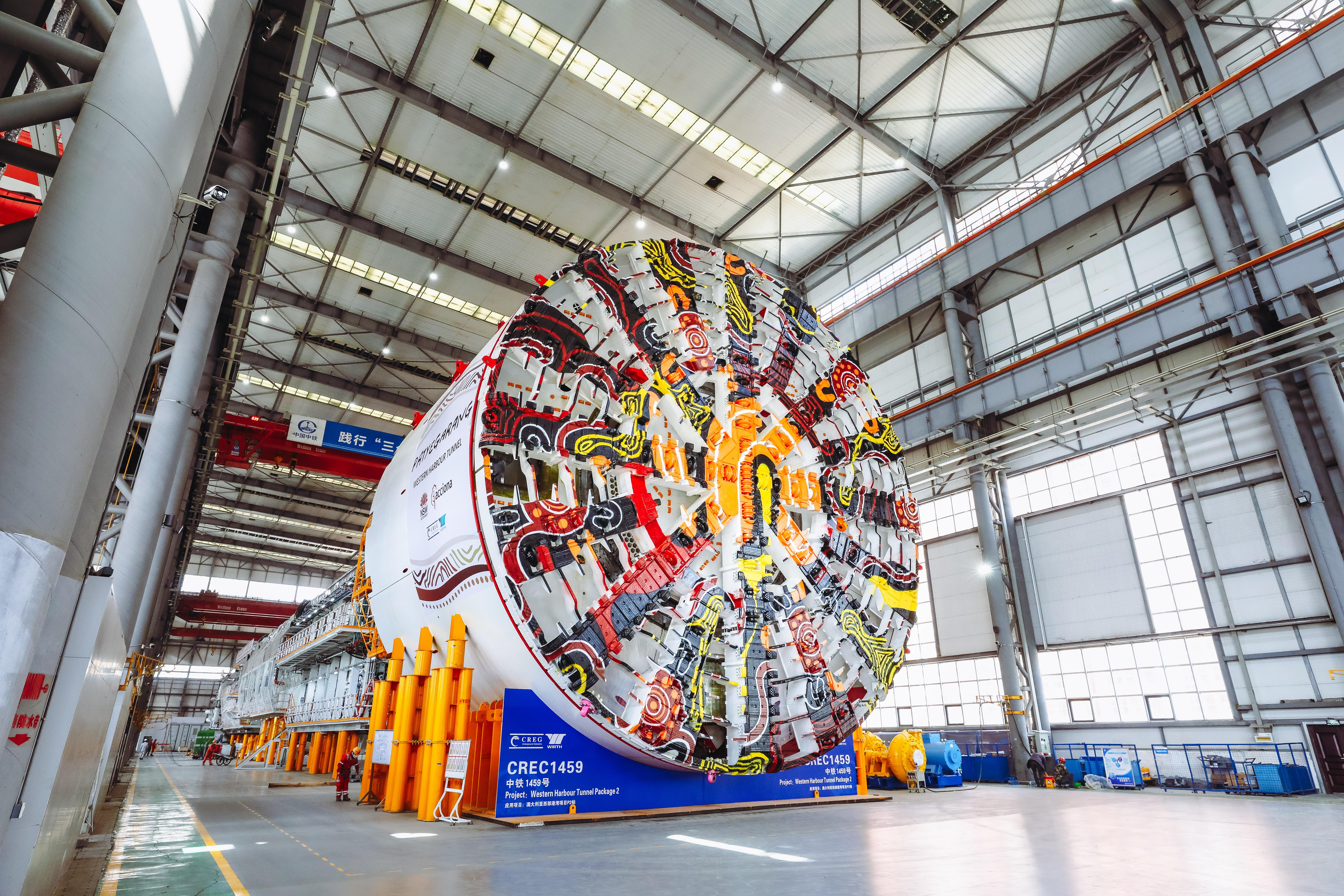 近日,在江蘇省太倉港國際碼頭,一臺身披“中國紅”的巨型裝備——“中鐵1459號”盾構機在龍門吊的牽引下緩緩被裝入貨輪。這臺開挖直徑達15.7米的鋼鐵巨擘,將投身于澳大利亞西部港灣隧道的掘進任務。