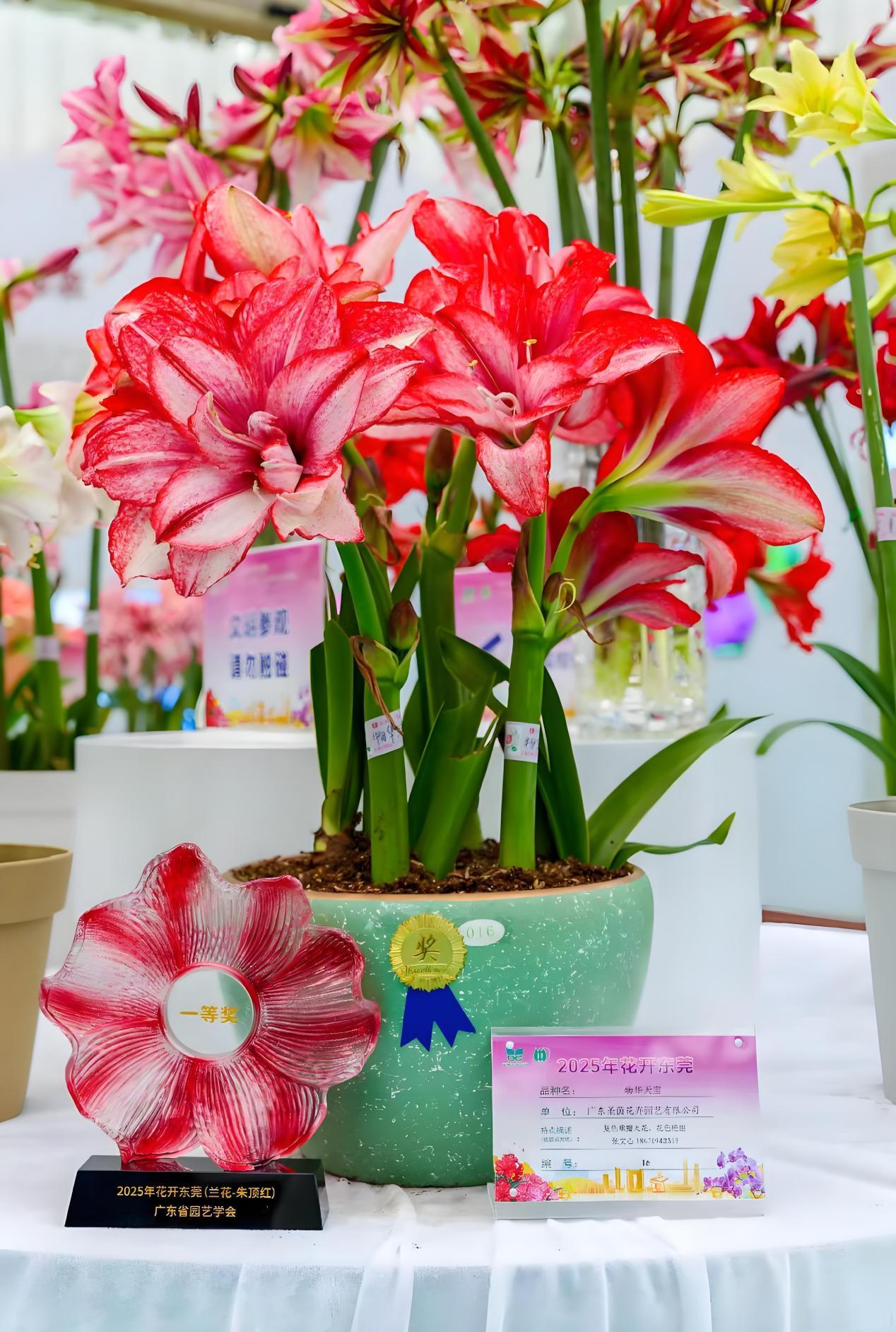 朱頂紅,素有“南國(guó)牡丹”與“球根皇后”的美譽(yù),是東莞重點(diǎn)培育的特色花卉品種。它花型豐富、色彩艷麗,兼具牡丹的富麗與百合的清雅,“注定紅”的吉祥諧音更讓其在年宵花市場(chǎng)備受青睞。歷經(jīng)二十年科技育種,通過(guò)太空育種、基因編輯等前沿技術(shù),東莞已建立涵蓋130個(gè)品種的朱頂紅種質(zhì)資源庫(kù),實(shí)現(xiàn)國(guó)產(chǎn)化規(guī)模生產(chǎn),每年向市場(chǎng)穩(wěn)定輸送商品球50萬(wàn)顆。