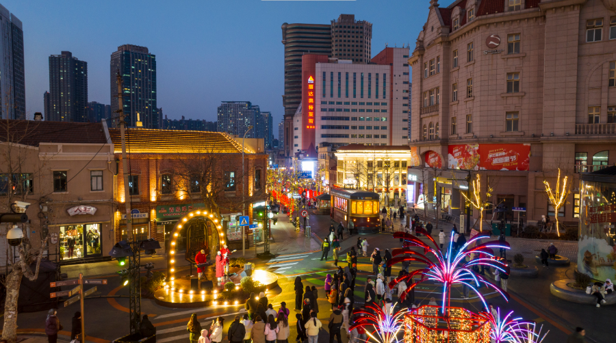 在這里,游客既可品嘗糖球、脂渣等美食小吃,欣賞里院建筑上投射的時(shí)光影像,也能在喂海鷗、賞海景中感受冬日青島的浪漫。這種將建筑、歷史、科技與自然景觀無(wú)縫銜接的做法,讓老街里“活”了起來(lái)。