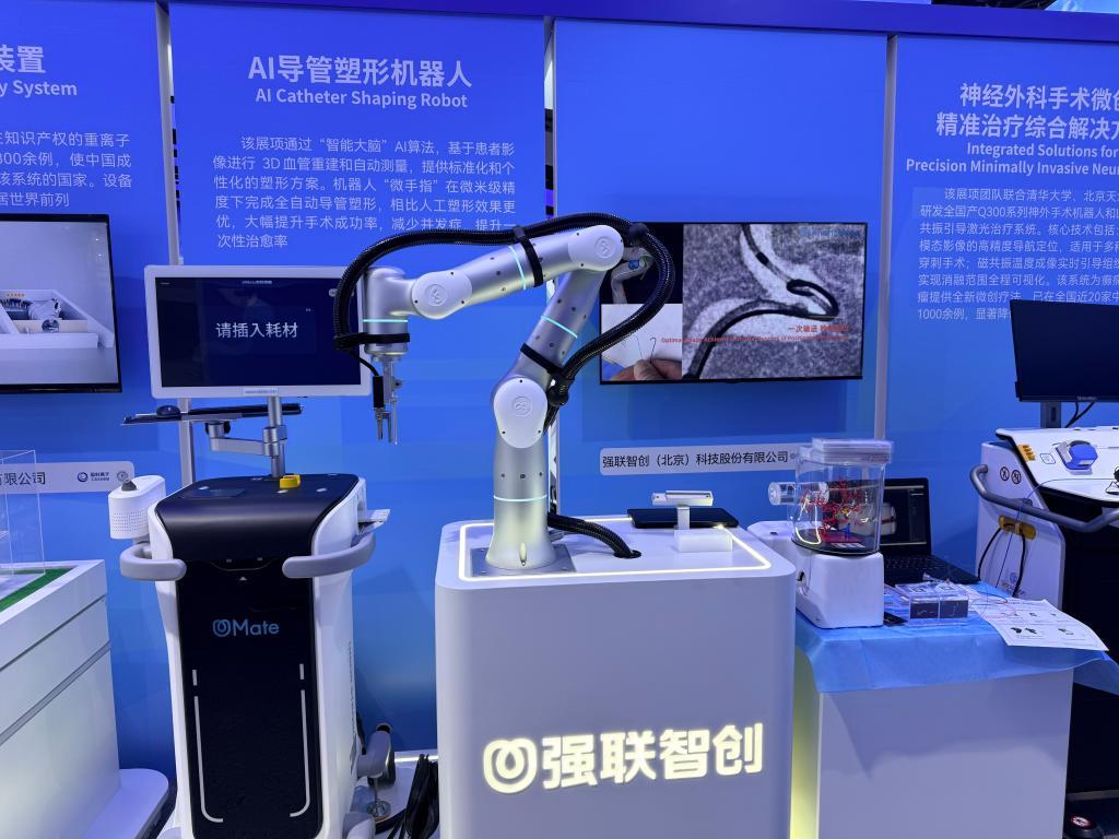 強聯(lián)智創(chuàng)推出一款A(yù)I導(dǎo)管塑形機器人,可對患者血管進(jìn)行自動測量和三維重建,通過算法分析,自動實現(xiàn)微米級精度的導(dǎo)管塑形。臨床顯示,與傳統(tǒng)人工塑形相比,機器人導(dǎo)管一次性到位成功率提升45%,5分鐘內(nèi)到位成功率提升88%。