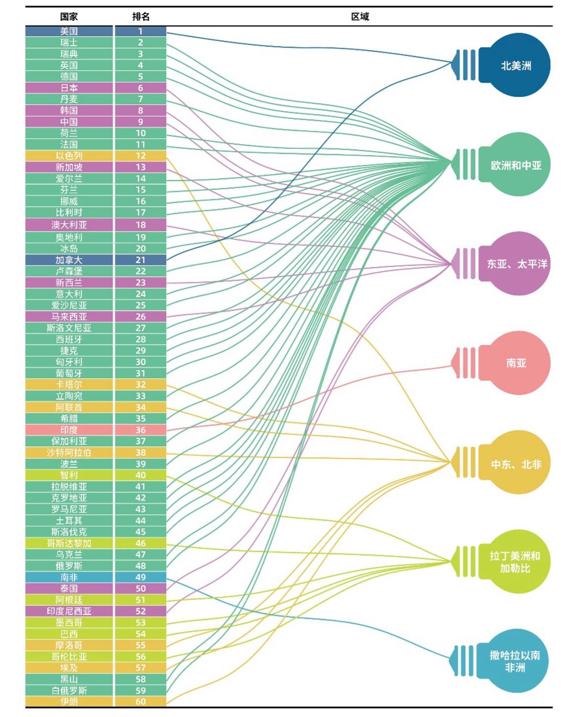 報(bào)告顯示,2025年,創(chuàng)新指數(shù)位列世界前十的國(guó)家依次為:美國(guó)、瑞士、瑞典、英國(guó)、德國(guó)、日本、丹麥、韓國(guó)、中國(guó)和荷蘭。