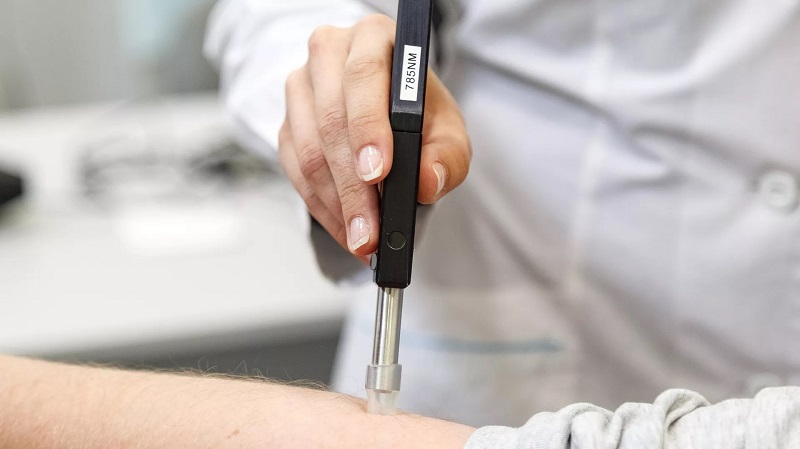 研究人員將激光照射到患者前臂的內側,射線穿透皮膚后,與皮膚組織發生作用,并根據組織成分改變其能量。用一個特殊的探頭記錄下這些變化,并確定每位患者皮膚的光譜特征。然后,使用機器學習方法,比較并分析了慢性心力衰竭患者和非慢性心力衰竭患者皮膚的所有光譜特征。