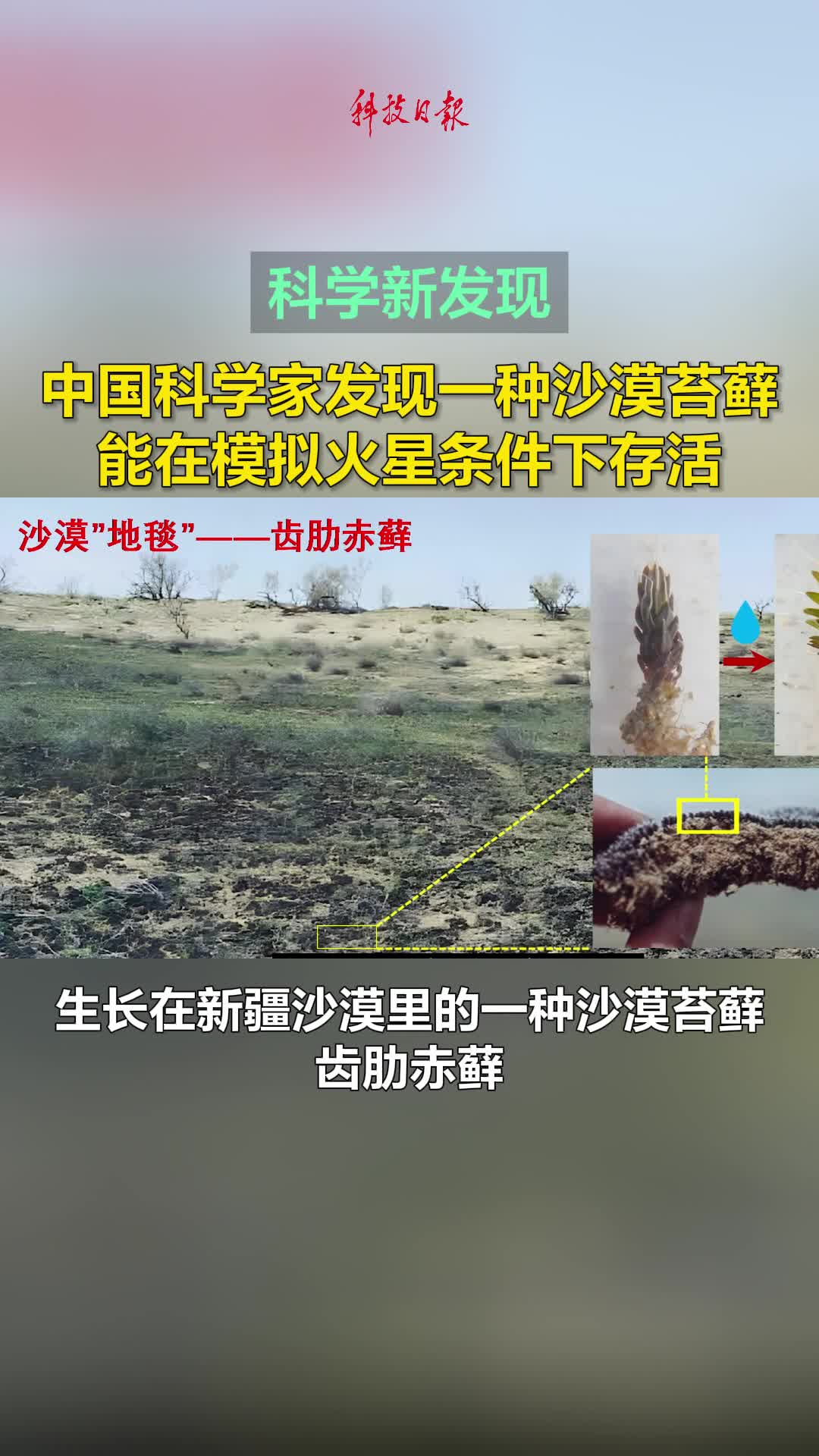 中國科學院的研究團隊發(fā)表在《創(chuàng)新》上的一項研究顯示,生長在新疆沙漠里的一種沙漠苔蘚——齒肋赤蘚,能在模擬火星環(huán)境下生存,有望成為火星綠化和生態(tài)系統(tǒng)建設的理想候選植物。