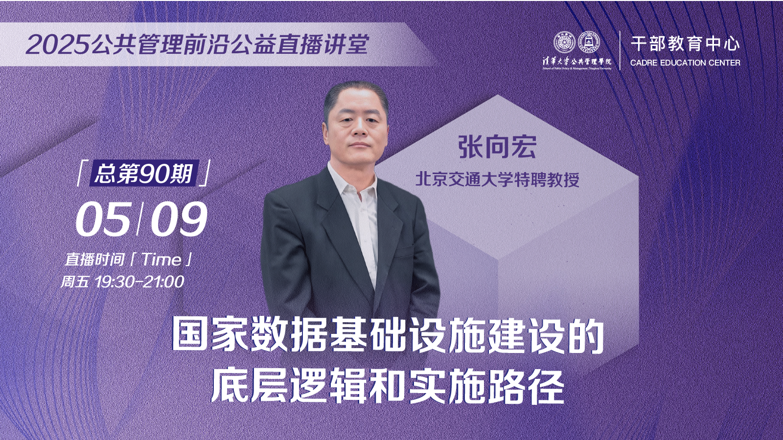 5月9日(周五)19:30,北京交通大學特聘教授張向宏為大家分享話題“國家數據基礎設施建設的底層邏輯和實施路徑”,敬請關注!