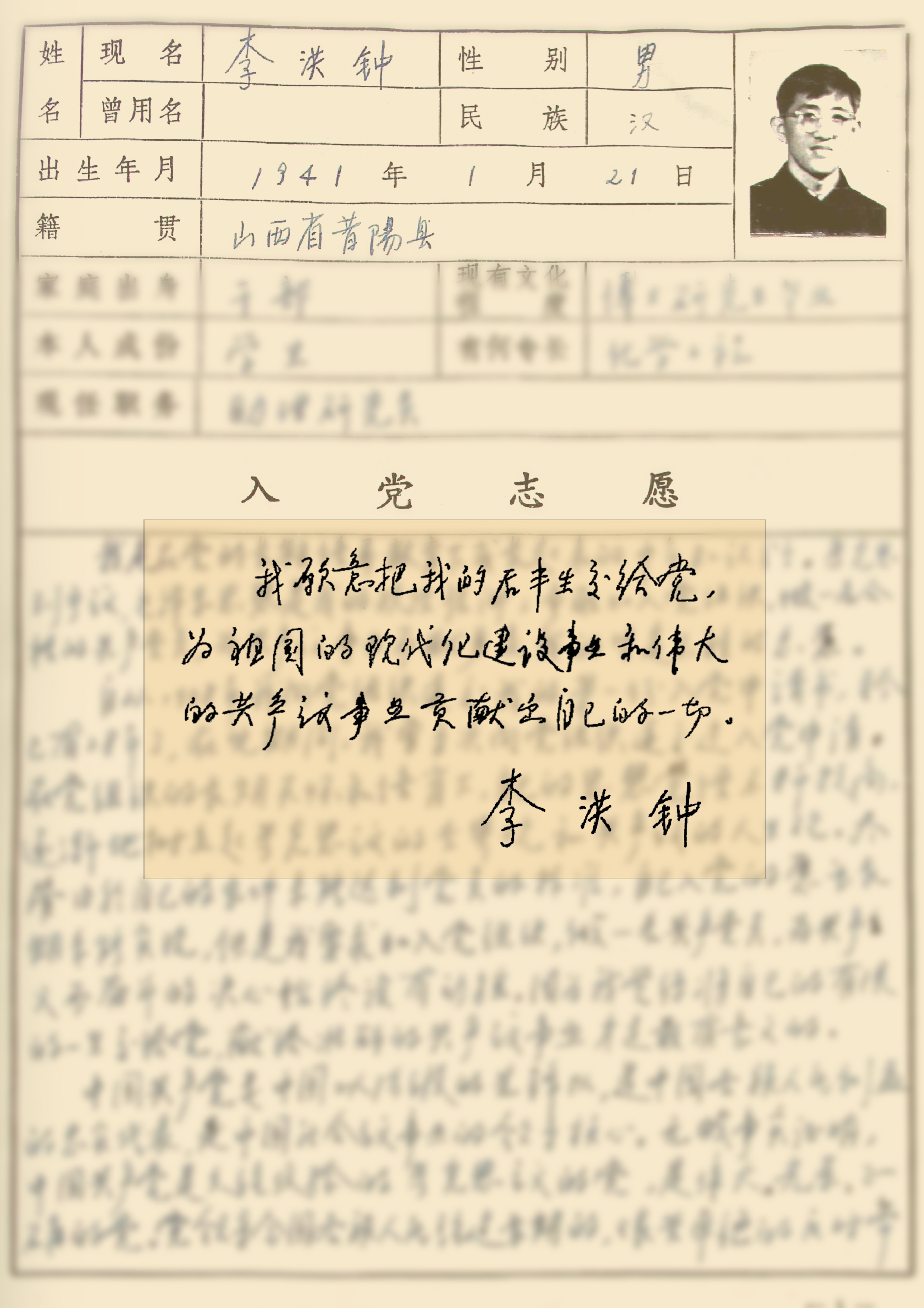 ——摘自李洪鐘1985年6月《入黨志愿書》