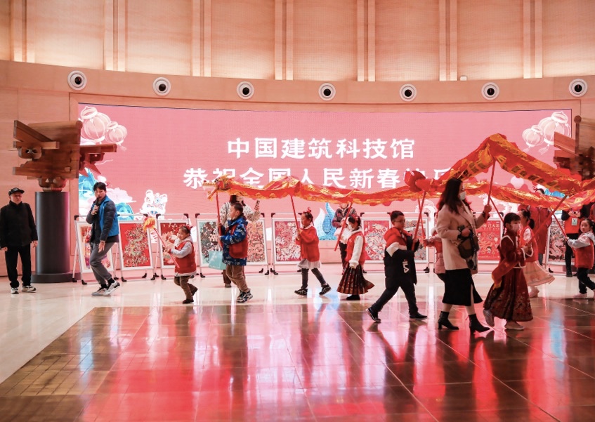 “在非遺活動中尋找中國龍”“在建筑中尋找中國龍”“搭建龍年創意空間”……眼下,“科技館過大年”逐漸成為新風尚。春節期間,許多親子家庭走進中國建筑科技館,沉浸式體驗“新春尋龍記”研學活動,聽志愿者講解建筑展覽,感受傳統節日與建筑科技碰撞的年味。