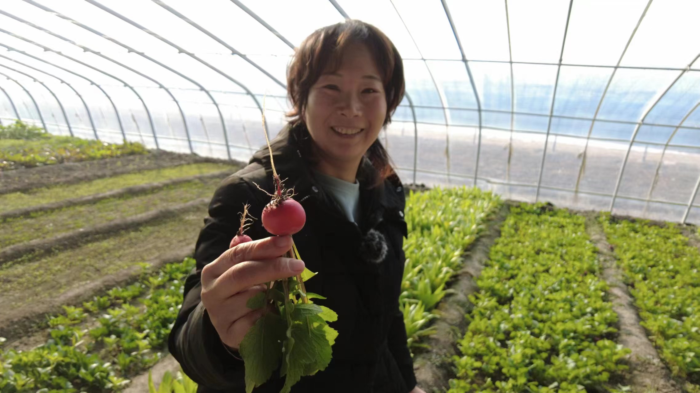 去年夏天,海河流域發生流域性特大洪水。東淀蓄滯洪區緊急啟用,第六埠村被淹土地1.04萬畝,其中溫室大棚2022棟,就包括張希芳家17棟蔬菜大棚。洪水過后,第六埠村及時組建黨員服務隊,按照“水退一畝,耕進一畝”原則,組織農戶加緊修復災毀農田和農業設施,科學地開展冬小麥、蔬菜等作物改種補種。目前已補種冬小麥1223.2畝、蔬菜1200畝,修復棚室1600余棟。