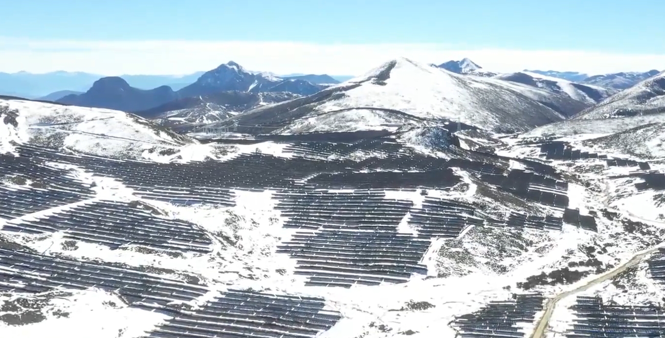 2月17日,在海拔4000多米的四川省涼山州木里縣爭西牧場,300多畝綿延的山巒身披“銀甲”,在皚皚白雪映襯下閃閃發光。這里是剛剛并網發電的四川省重點工程——卡基娃水電站水光互補光伏項目現場。